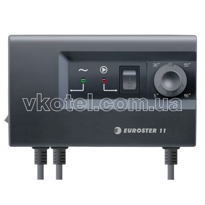 Euroster 11 - это электронный контроллер насоса центрального отопления, предназначенный для автоматического включения и выключения контурного насоса, согласно заданной температуре. Контроллер осуществляет принудительную циркуляцию воды в системах Ц.О. с твердотопливным или газовым котлом (без системы управляющей работой насоса). Датчик контроллера измеряет температуру подачи Ц.О. В системе Ц.О. с твердотопливным котлом контроллер выключит контурный насос после погасания пламени в котле.