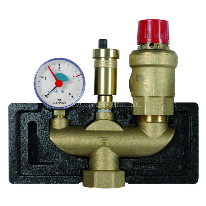 Запобіжний клапан 3 бар, 1\" х 1 1/4\". Манометр 0/4 бар, Ø 63, 3/8\", рад. з відсічним клапаном. Розповітрювач 3/8\", 12 бар з відсічним клапаном.