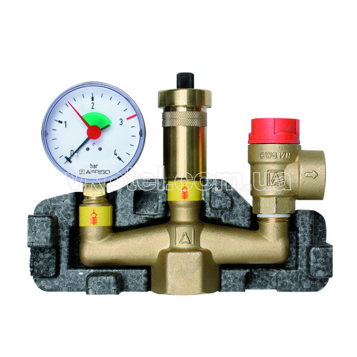Запобіжний клапан 3 бар, 1/2\" х 3/4\". Манометр 0/4 бар, Ø 63, 3/8\", рад. з відсічним клапаном. Розповітрювач 3/8\", 12 бар з відсічним клапаном.