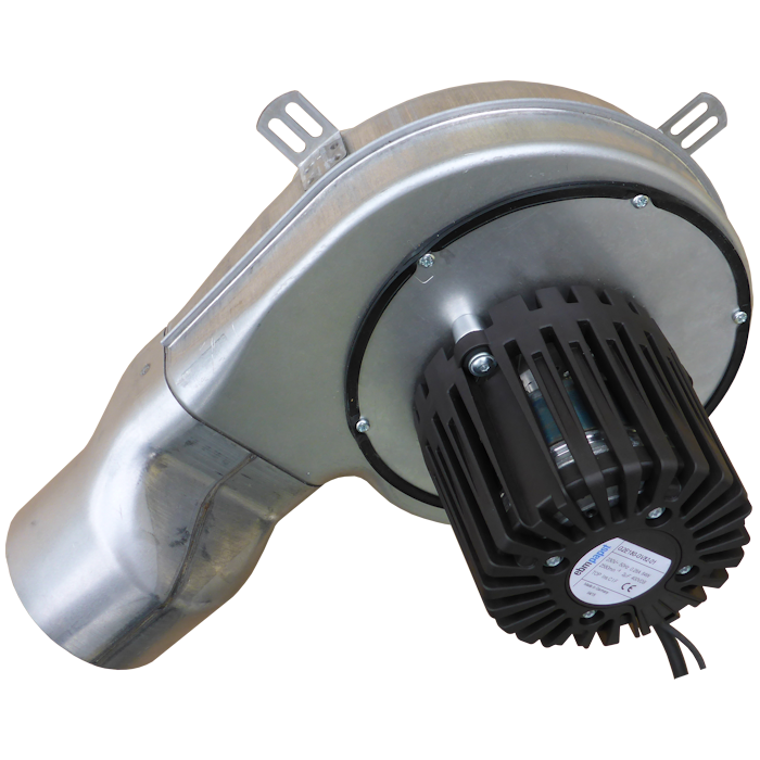 G2E-180-GV82 вентилятор підходить для будь-якого твердопаливного котла, здатний для транспортування повітря понад 250 С. Двигун в дымососе розташований з зовнішньої частини, що забезпечує йому краще охолодження.